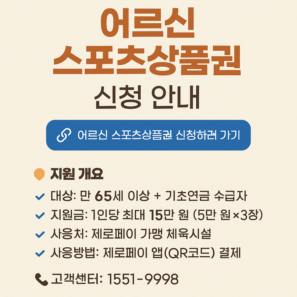 어르신스포츠상품권으로 최대 20만원까지 지원받을 수 있습니다! 만 65세 이상이라면 누구나 신청 가능하지만, 신청 마감일과 절차를 모르면 혜택을 놓칠 수 있어요. 지금 바로 확인해서 스포츠 활동비 절약하세요.